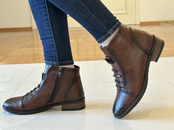 • Botki damskie Sabatina DM 25-08 brown suwak gumka i ozdoby w cholewce